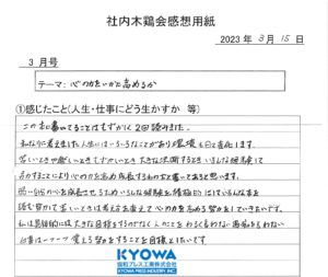 2025年 2月の社内木鶏会 感想文をご紹介します。